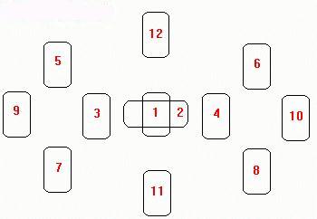 The dividing line is where the opposing positions meet. Cards 1 and 2 define the heart of the matter - the fundamental conflict. These cards describe the dynamic between A and B that has created the specific problem. Card 11 holds the key to the conflict as a whole. It offers guidance to both parties on how to resolve their differences mutually. Card 12 is the projected outcome if matters continue as they are.
